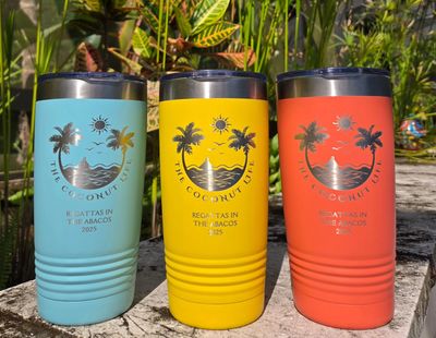 These insulated tumblers were custom-made for our favorite kind of summer days—salty, breezy, and best enjoyed with a cold drink in hand. Created for a special sailing tradition, Regattas in The Abacos, they're now available in limited supply for those who meant to come or partied too hard to keep track.